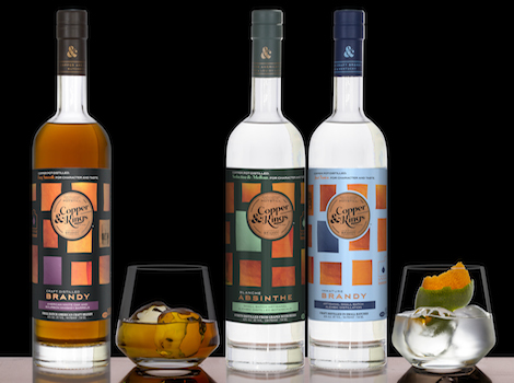 The distillery uses copper pot stills to forge untraditional, natural aged and immature brandies and absinthes. By distilling wine at a low temperature just twice and non-chill filtering the product, Copper & Kings creates craft grape brandies that are aromatic and complex, according to the company.