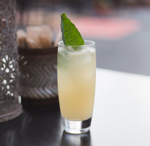 Lightly muddle fresh basil in a cocktail shaker. Add tequila, grapefruit juice, fresh lime juice, simple syrup and ice. Shake well. Strain contents into a Collins glass over fresh ice. Top with ginger beer and garnish with basil spring and lime wheel.