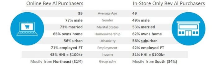 Compared to regular buyers who only purchase alcohol in-store, online buyers tend to be higher-earning, younger, male, married, and employed full-time.