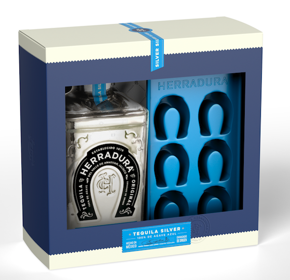 Comes with one 750-ml. bottle of Tequila Herradura Silver and a custom horseshoe ice mold tray, with a cucumber mint ice cube recipe on the packaging.