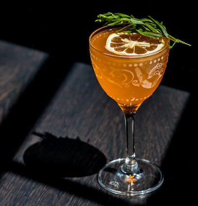 Add all ingredients with ice into a shaker and shake vigorously. Double strain into a small coupe or Nick & Nora glass. Garnish with fresh tarragon.