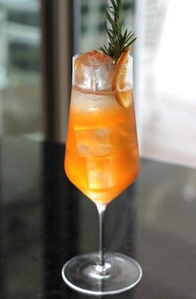 Fill up ¾ of a wine glass with ice cubes. Add all the ingredients and stir gently. Garnish with a grapefruit twist and rosemary sprig