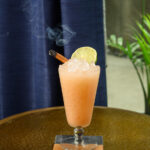 - Garnish with a burnt cinnamon stick and lime wheel