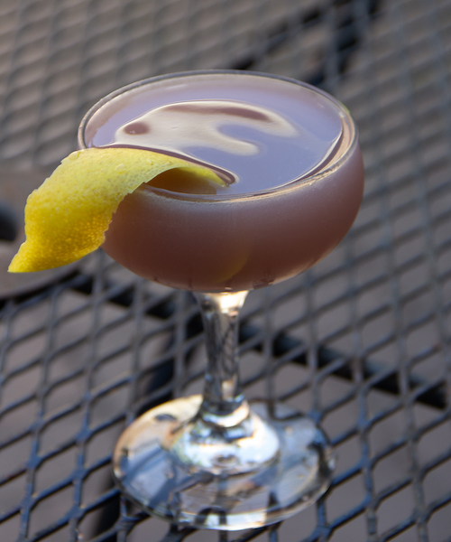 - Add all ingredients to a shaker tin with ice, shake, and strain into a coupe glass, express and garnish with a lemon peel.