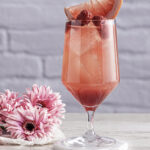 - Garnish with grapefruit slice, fresh raspberries and some blossoms.