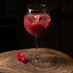 - In a blender, place the Chambord, gin, red wine, strawberries and rose water.