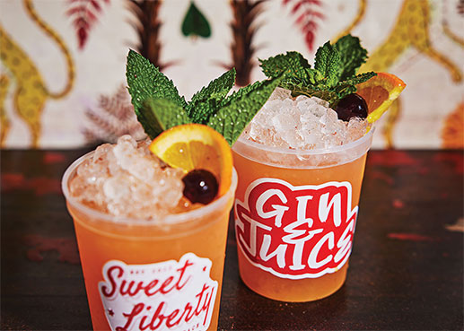 At Sweet Liberty, “Our approach with gin is we always start with the base spirit and an idea that goes back and forth until something delicious comes about,” Wicker says. The bar’s gin-based cocktails include the She Said Yes ($16), made with Hendrick’s gin, Tio Pepe fino sherry, fresh lemon, smashed cucumber and raspberry; The Spaniard ($17) with Gin Mare, white vermouth, Del Maguey Iberico mezcal, Nardini Mandorla, vanilla and a blue cheese olive; and Gin & Juice ($16), with The Botanist gin, Aperol, guava, pineapple, mango, lime juice, absinthe and cinnamon.
