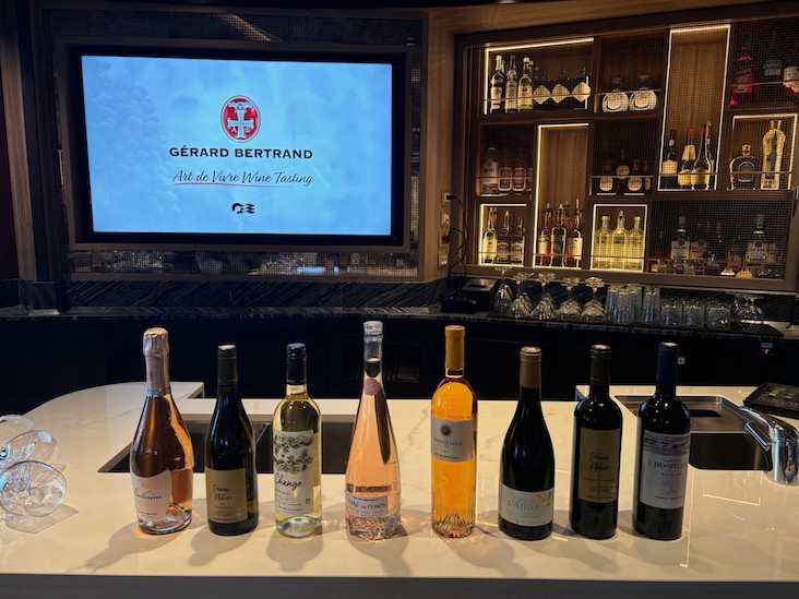 Bertrand’s video segments interspersed with the live commentary in the lounge kept things interesting, and we appreciated the phonetic spellings of some of the French words in the notes booklet provided. It wasn’t quite the same as being in a winery in the South of France, but when you’re on board a cruise ship, who cares?