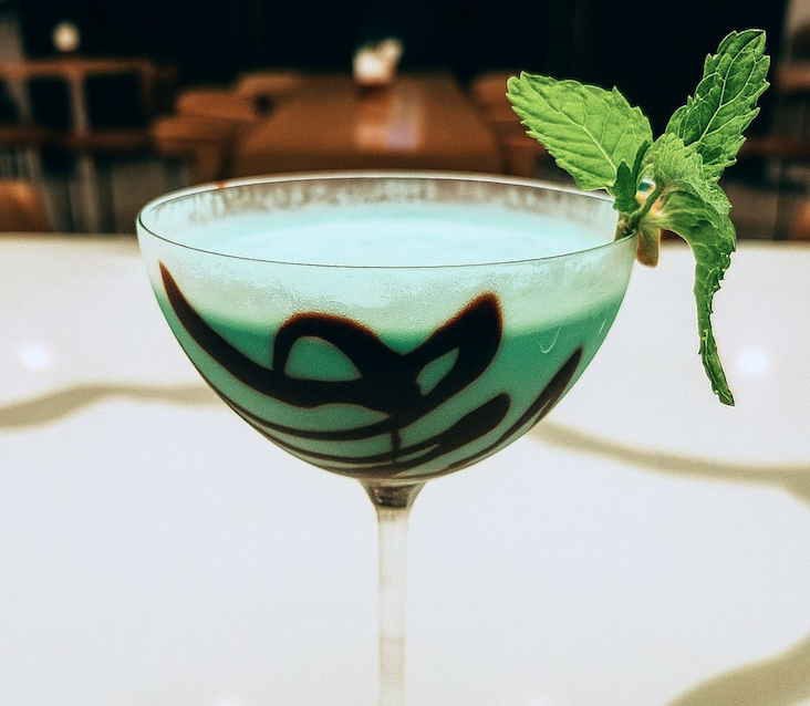 The mixologists at Aura Bar & Grill in the Hilton Irvine in California’s Orange County created this recipe.