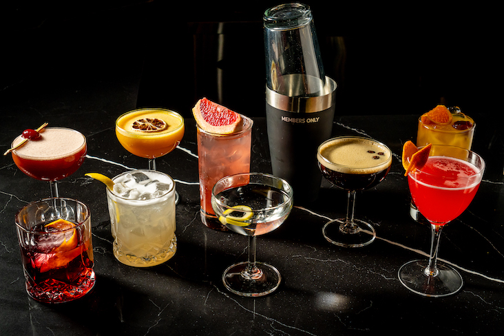 The beverage program at Members Only pays homage to the nightlife eras that shaped its identity, featuring a mix of classic cocktails and playful shots inspired by the 1980s and ’90s. The bar team designed the drinks to reflect an iconic Members Only jacket, allowing guests to match their cocktail to their style. “These cocktails carry the soul of shoulder pads and synch beats, Walkmans and dance floors, reimagined with sophisticated vibrant and refreshing flavor profiles,” according to the menu.